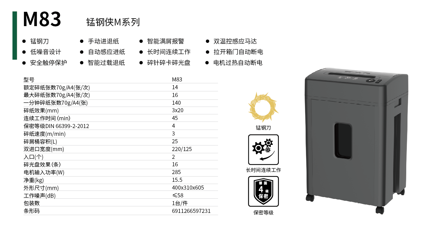 锰钢侠M系列碎纸机