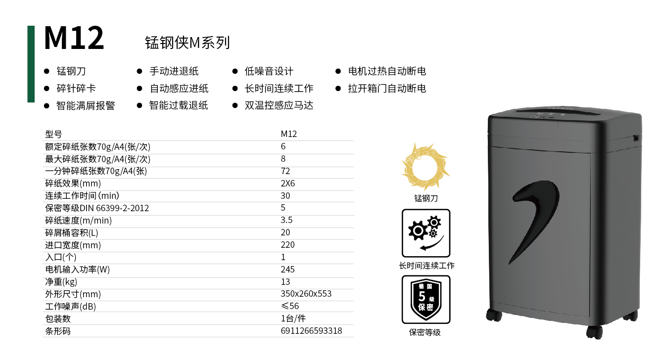 锰钢侠M系列碎纸机